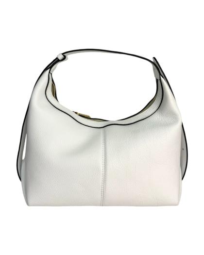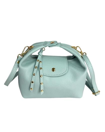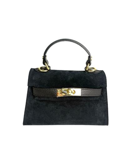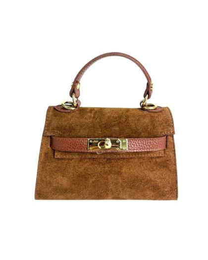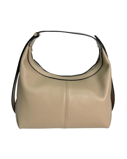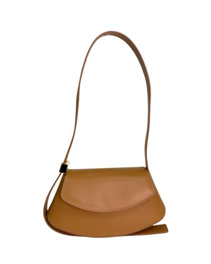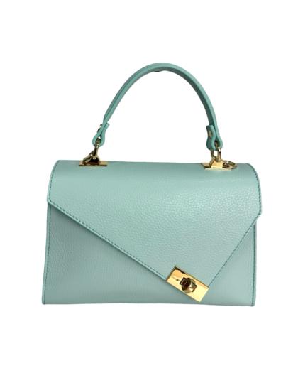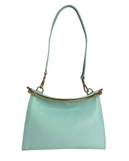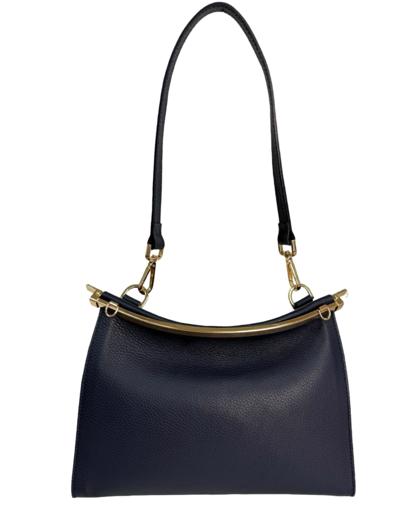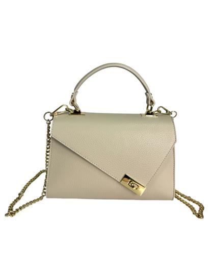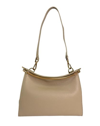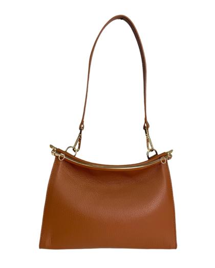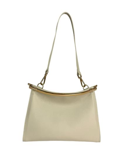 Exterior: gold-colored metal closure, removable and adjustable leather shoulder strap