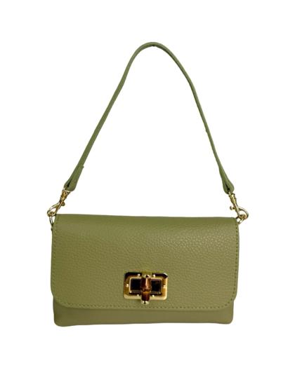 Materiale esterno: Vera Pelle con patta irregolare e accessorio oro