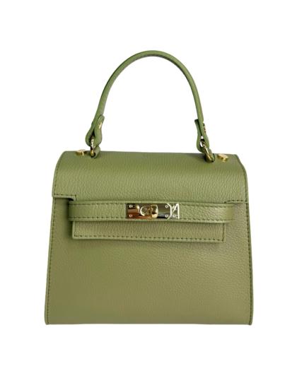 Materiale esterno: vera pelle con due manici in pelle con anelli in oro