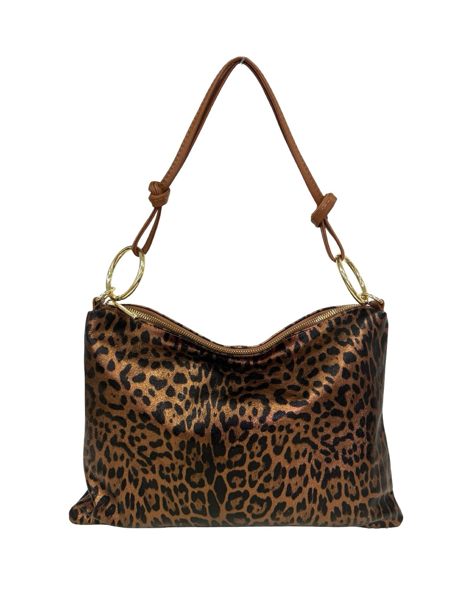 Materiale esterno: vera pelle con due manici in pelle con anelli in oro