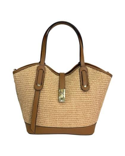 Leather and raffia bag