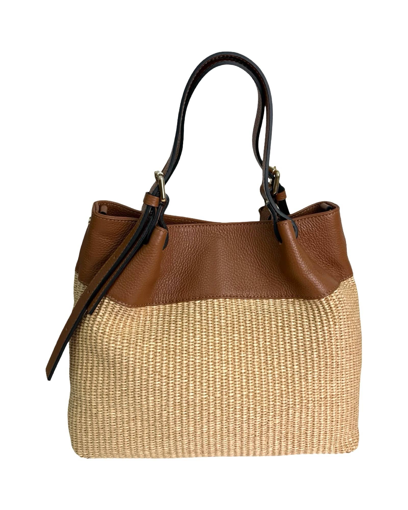 Leather and raffia bag