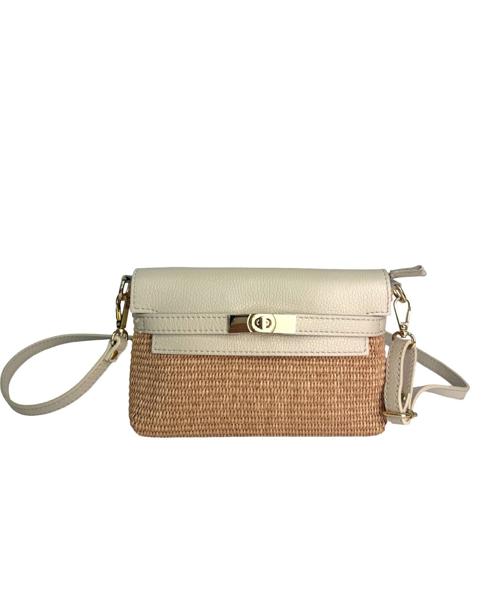 Leather and raffia bag