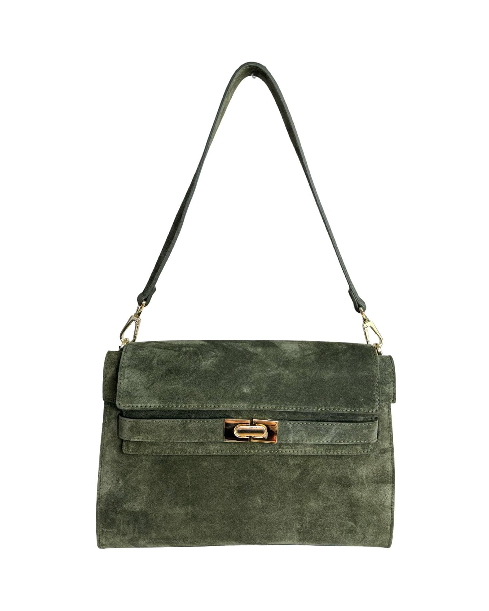 Exterior: gold-colored metal closure, removable and adjustable leather shoulder strap