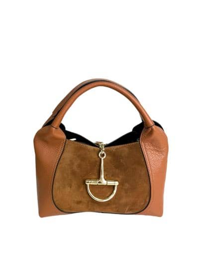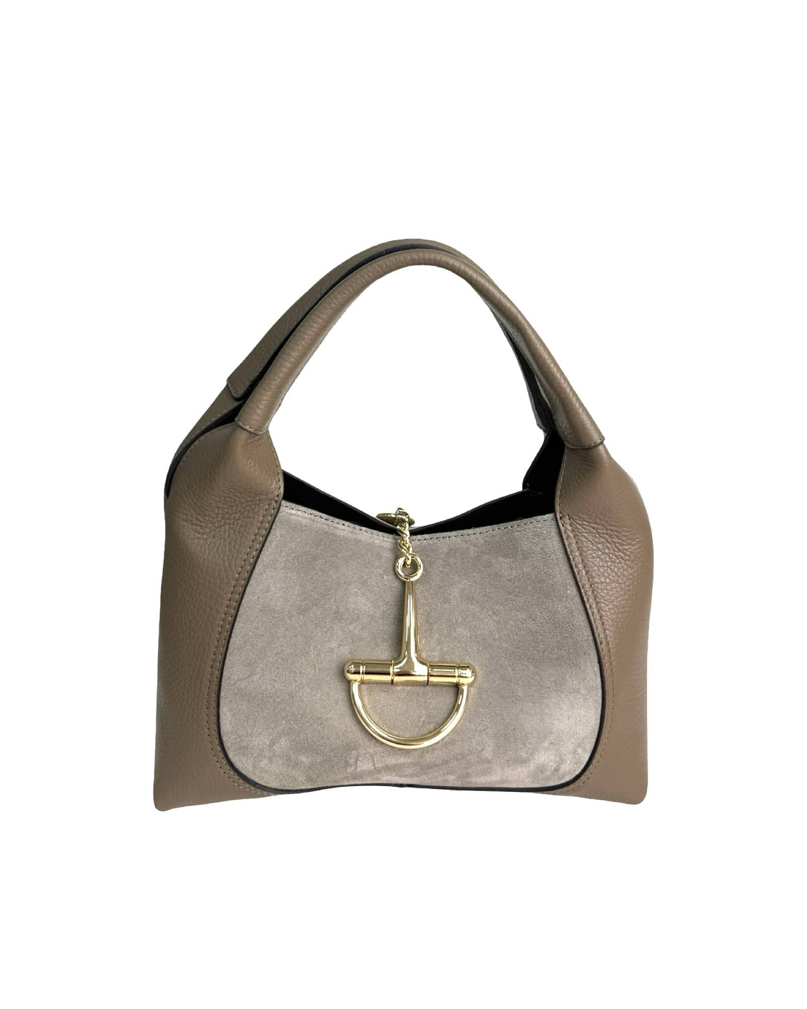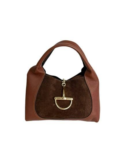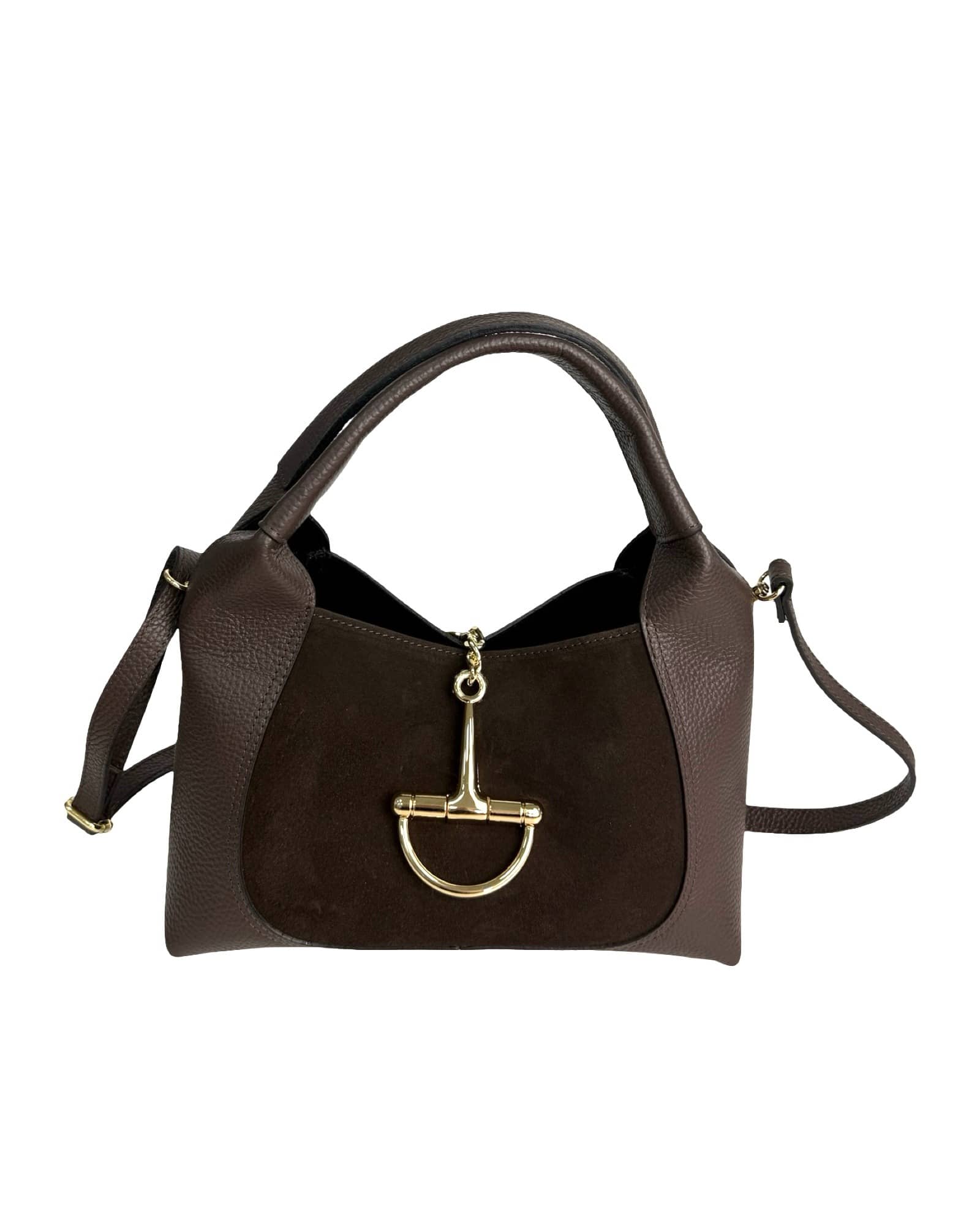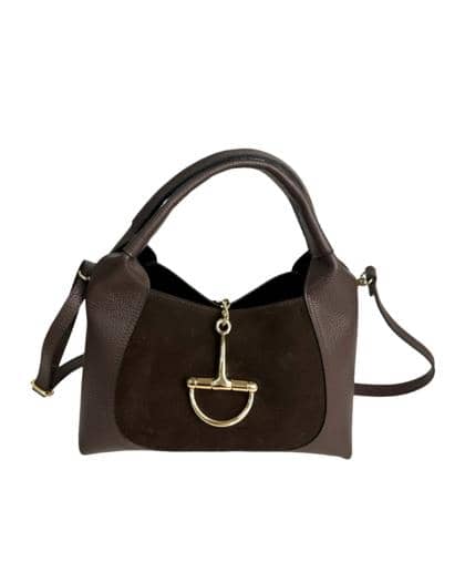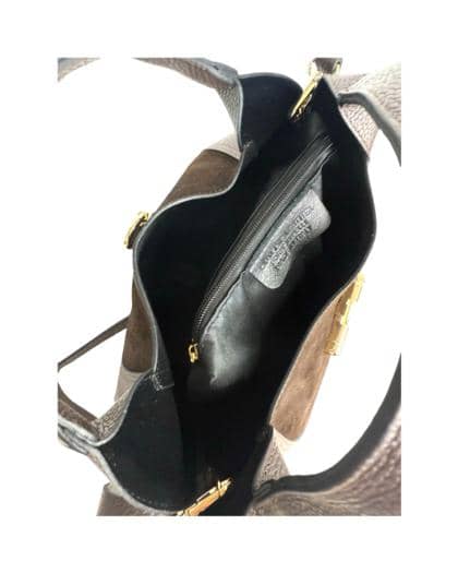 Exterior: gold-colored metal closure, adjustable shoulder strap