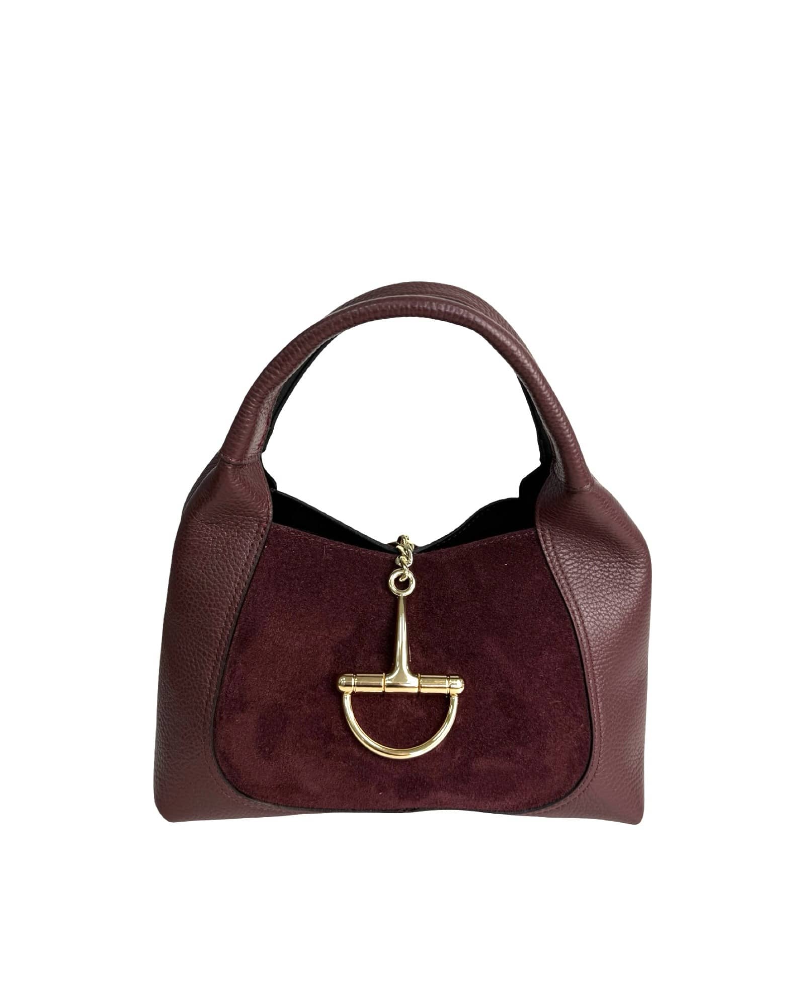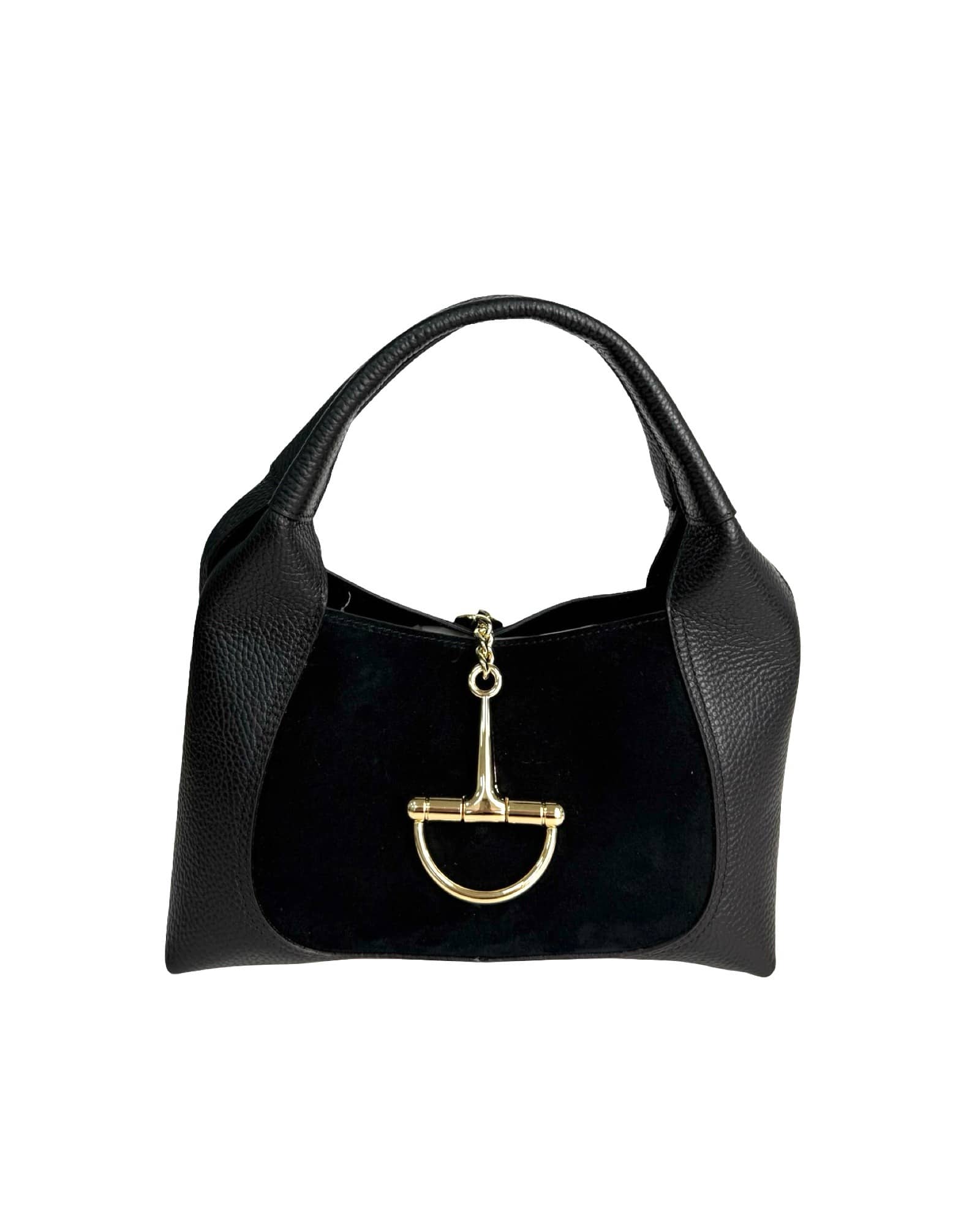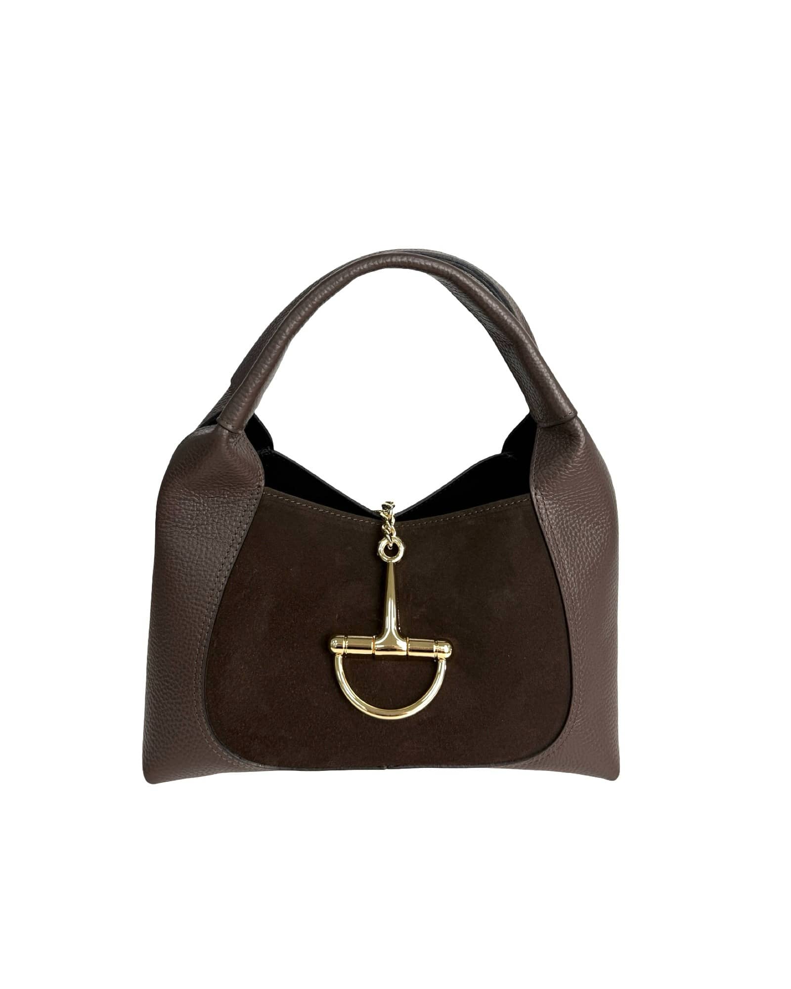 Exterior: gold-colored metal closure, adjustable shoulder strap