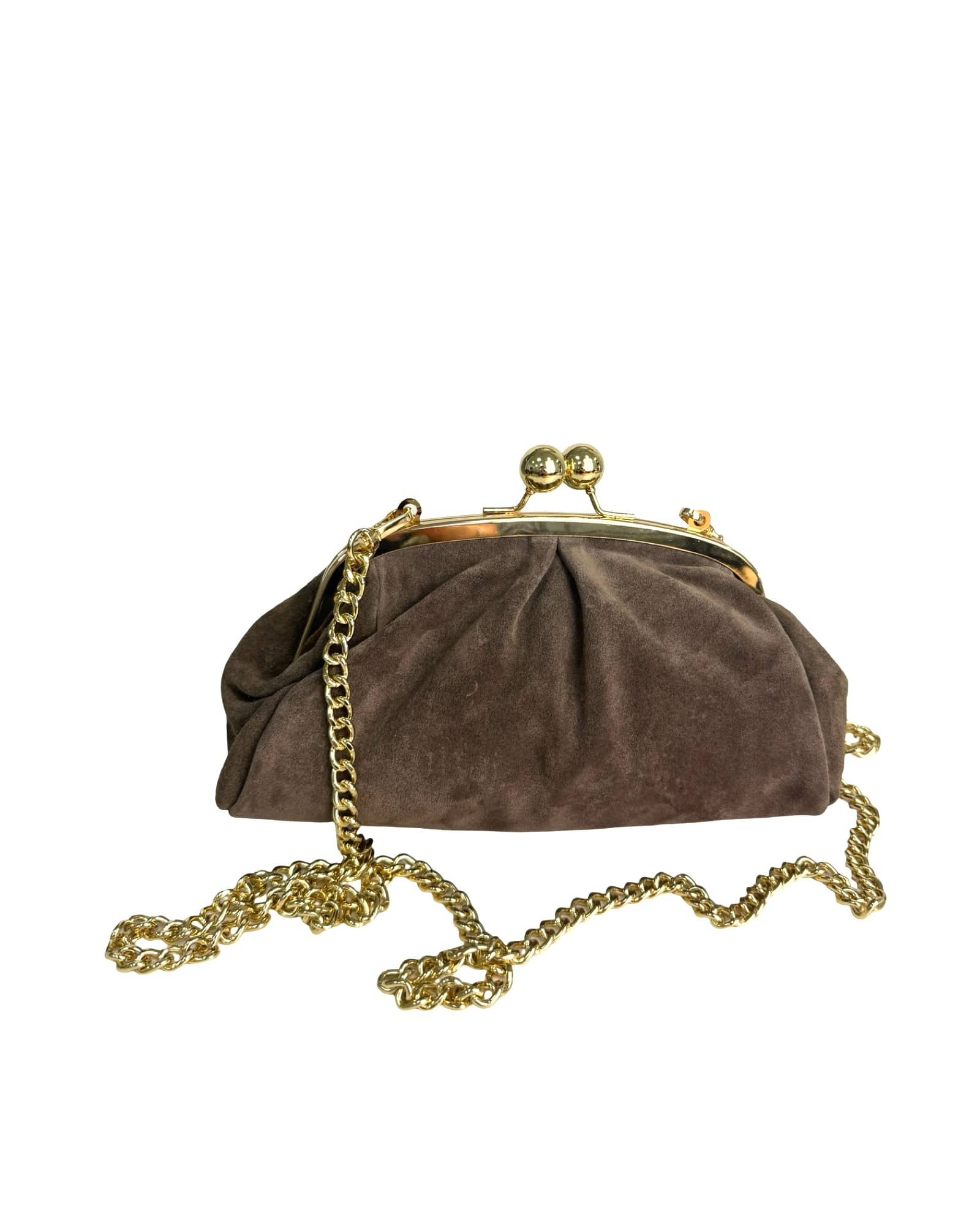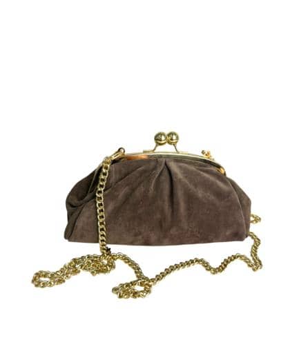 Exterior: gold-colored metal closure, non-adjustable gold chain shoulder strap