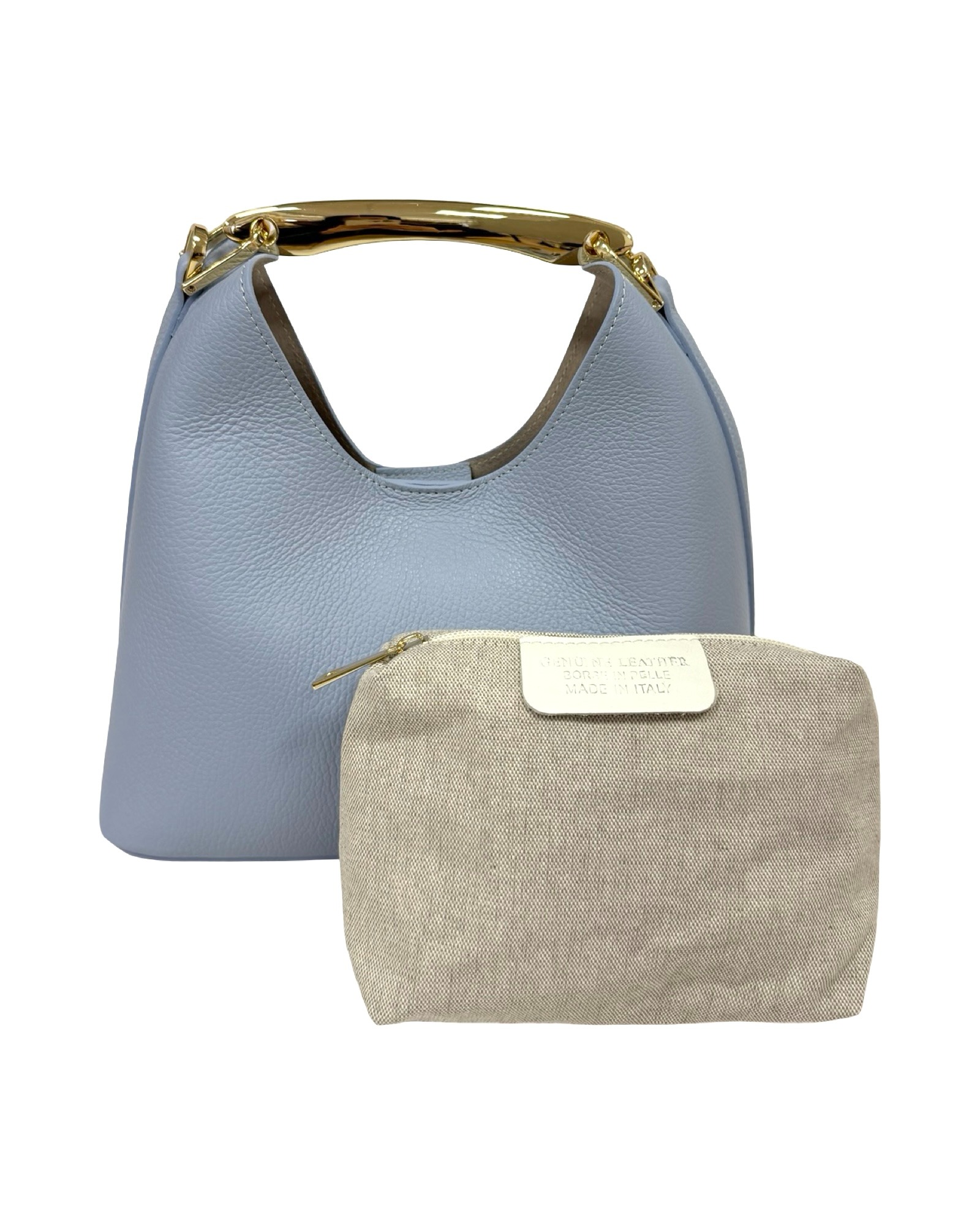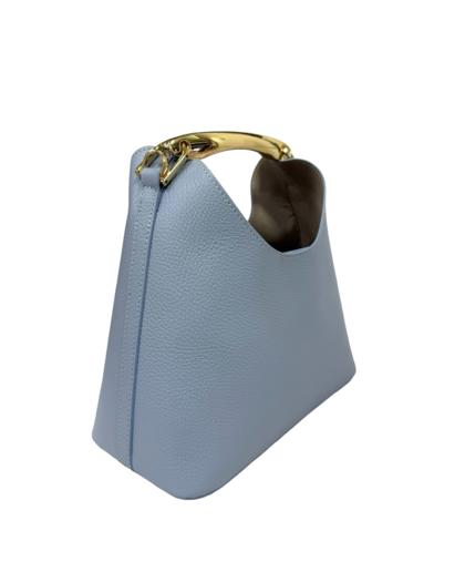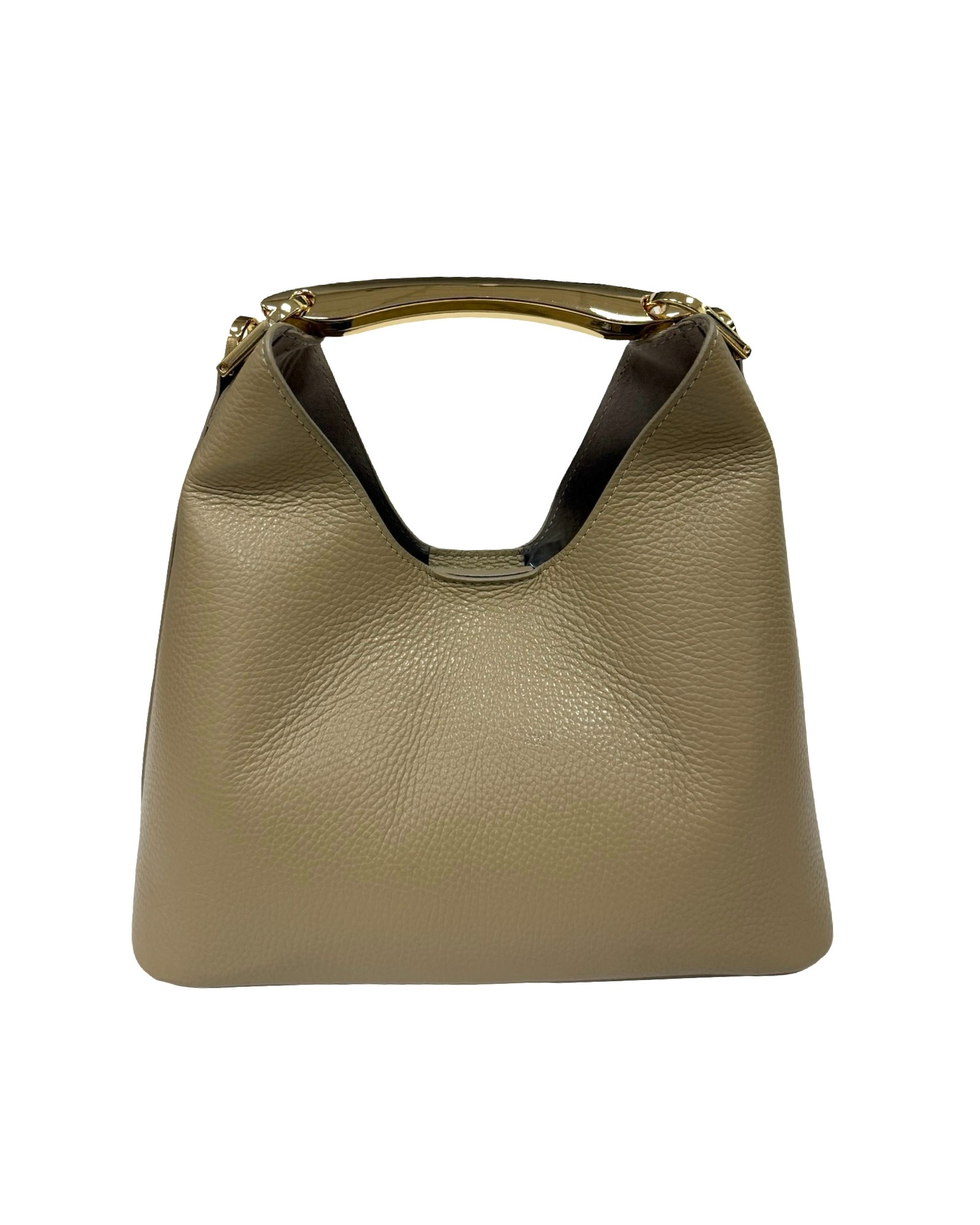 Exterior: button closure handle with gold-colored accessory