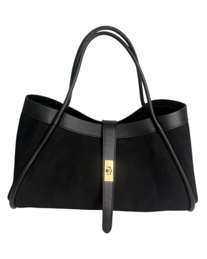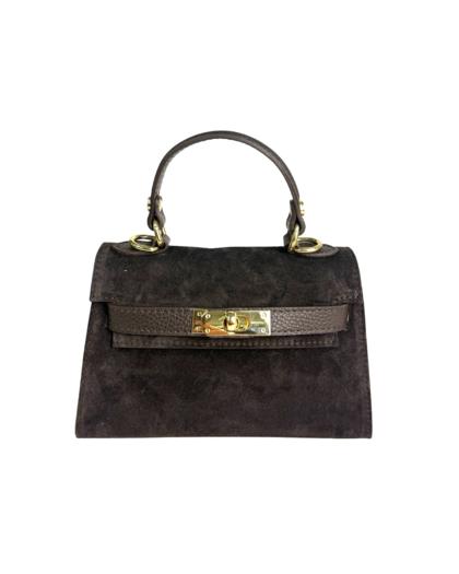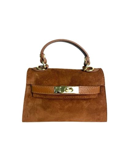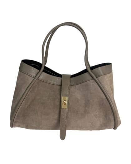 Material exterior: piel auténtica y ante con cierre dorado en la parte delantera.