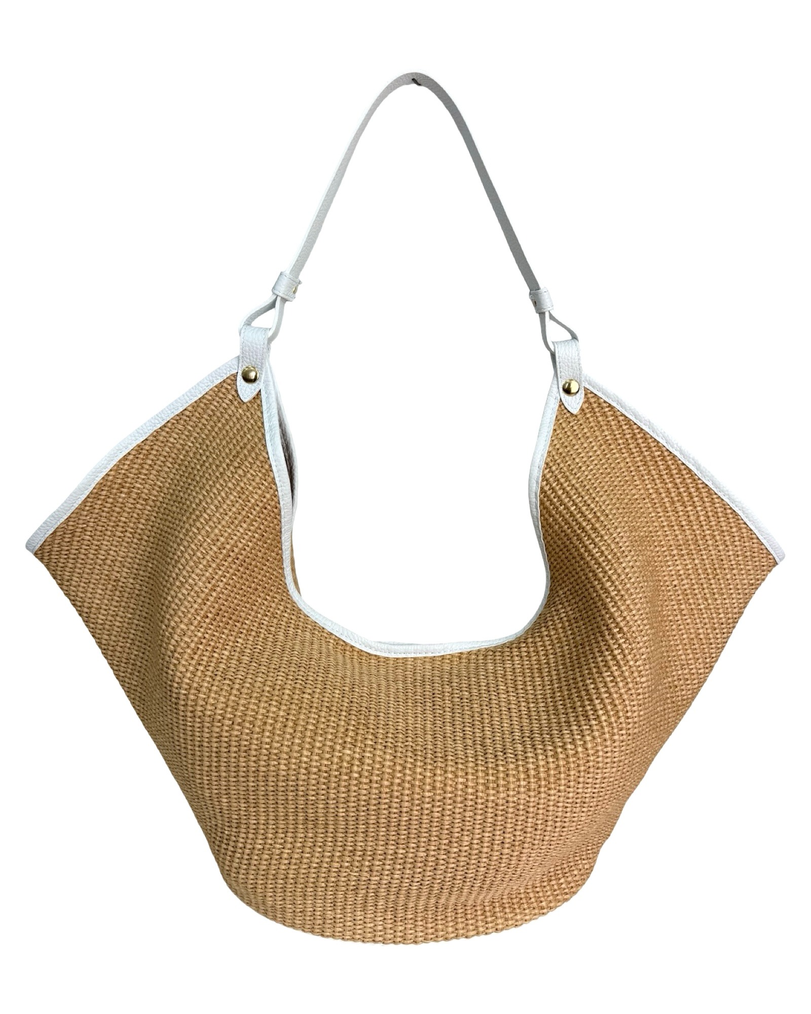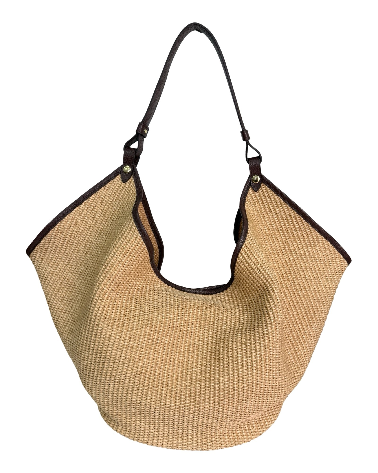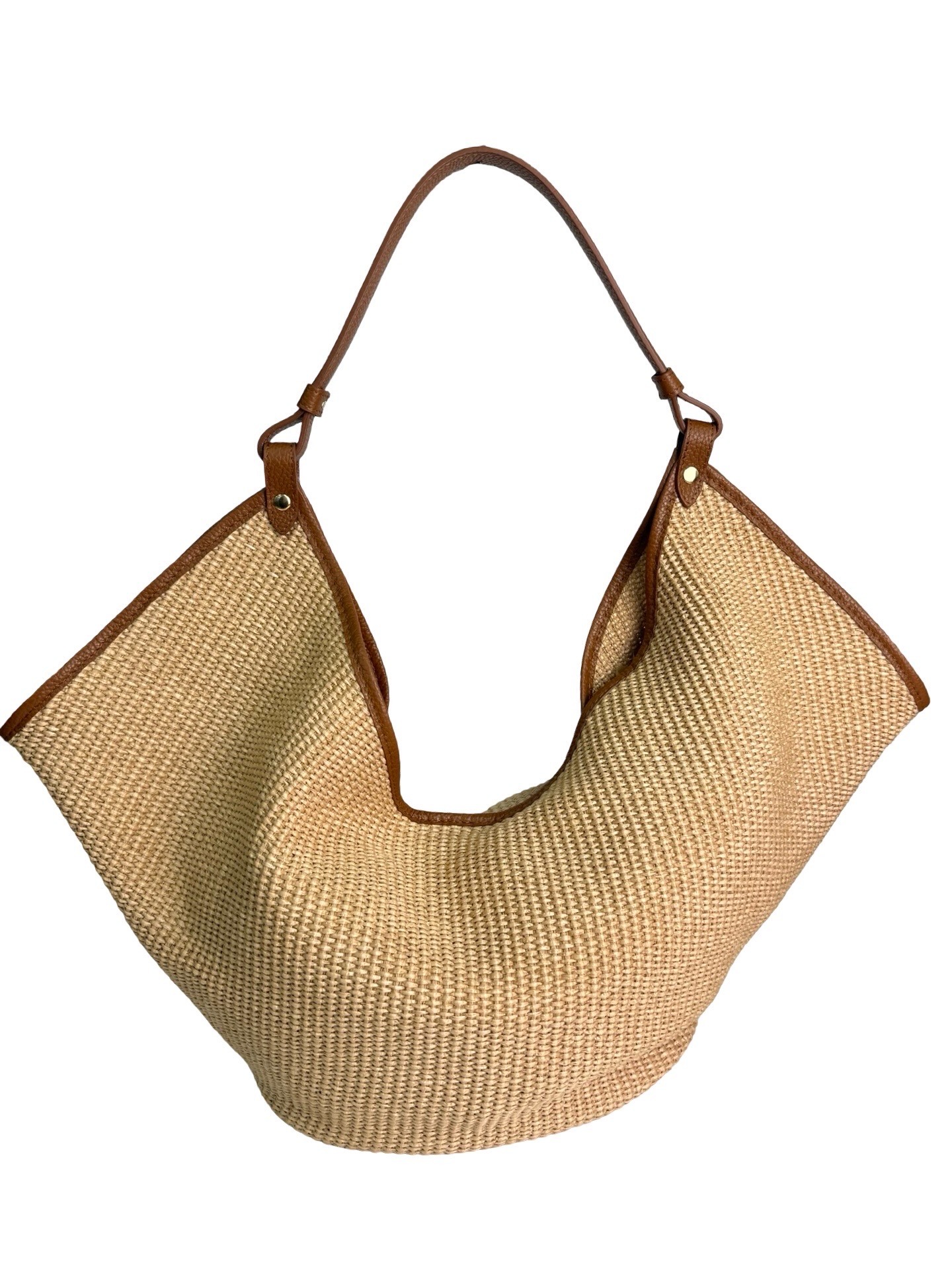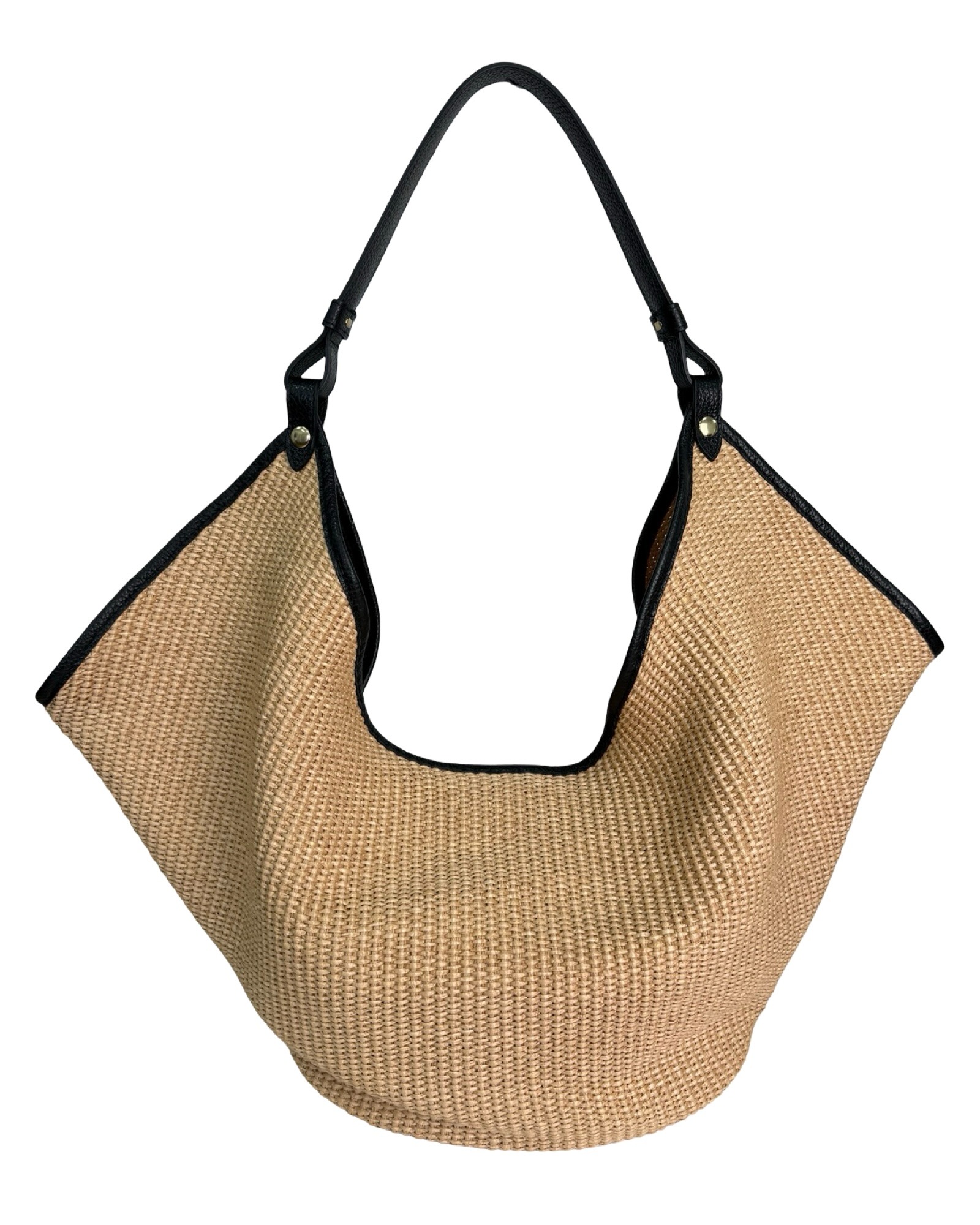 Outer material: genuine leather and raffia with button closure
