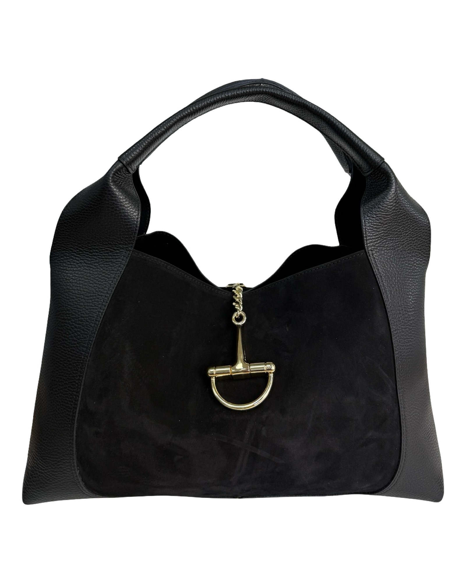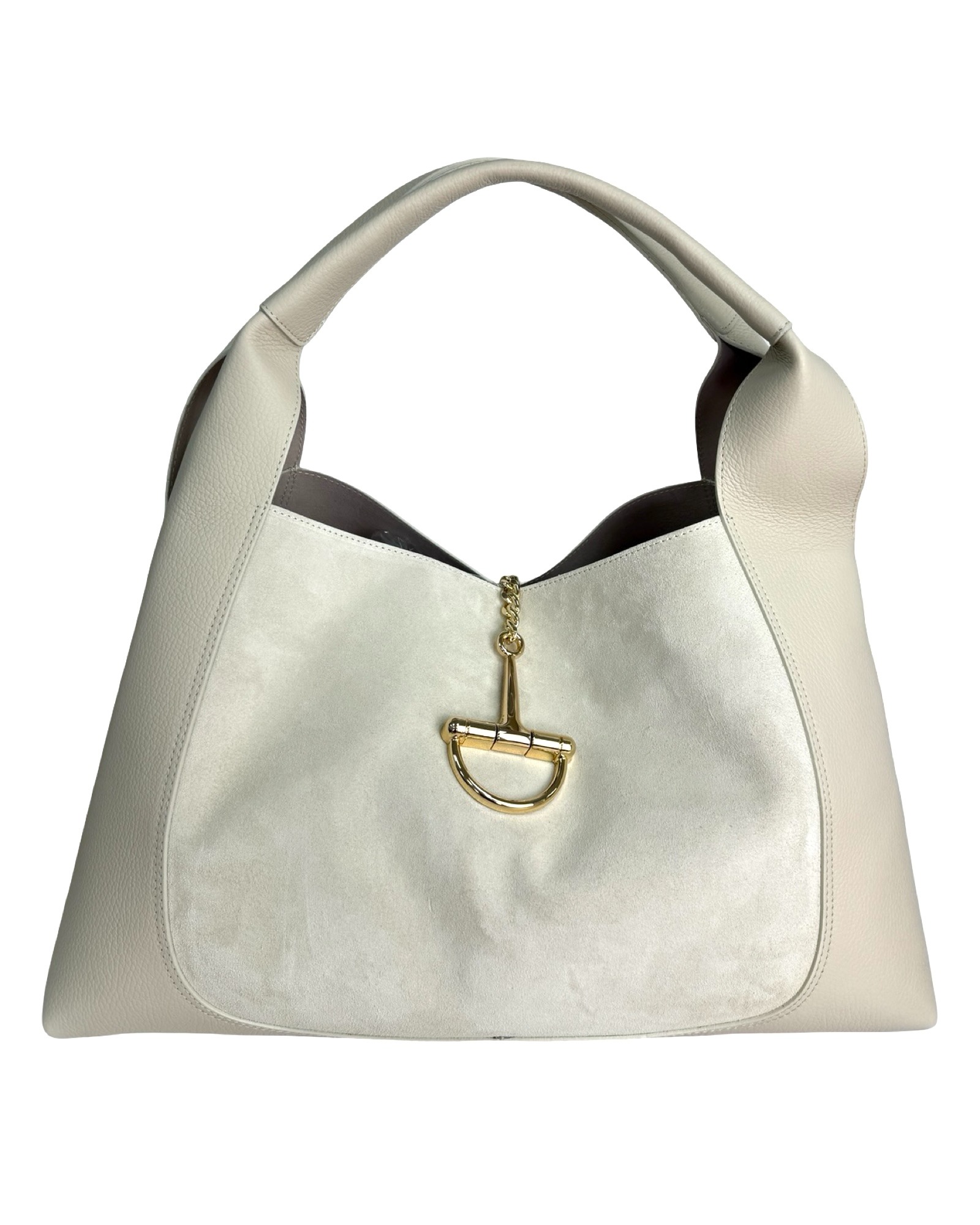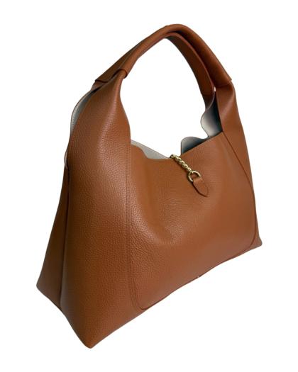 Exterior: gold-colored metal closure, adjustable shoulder strap