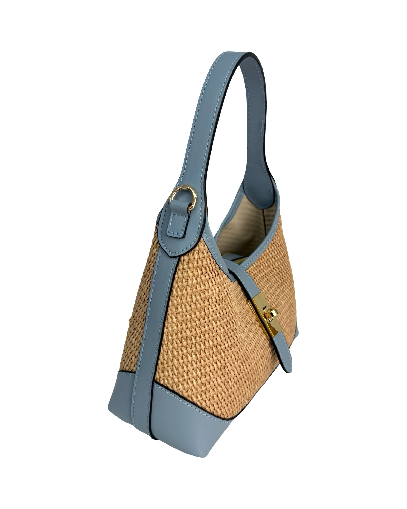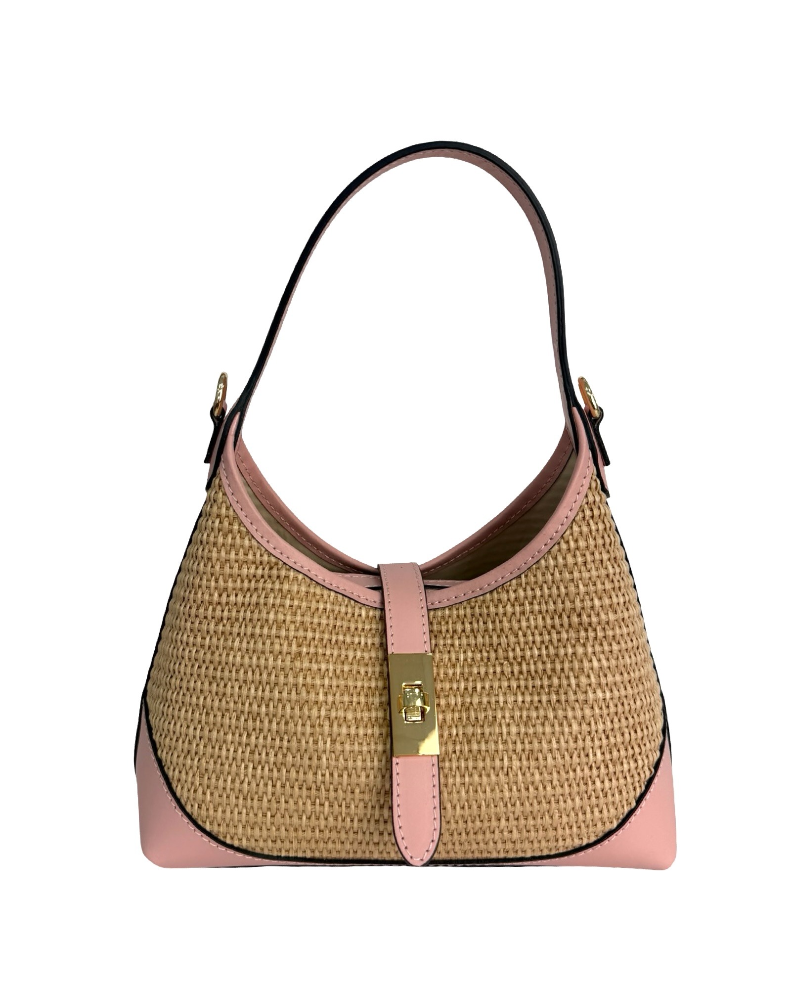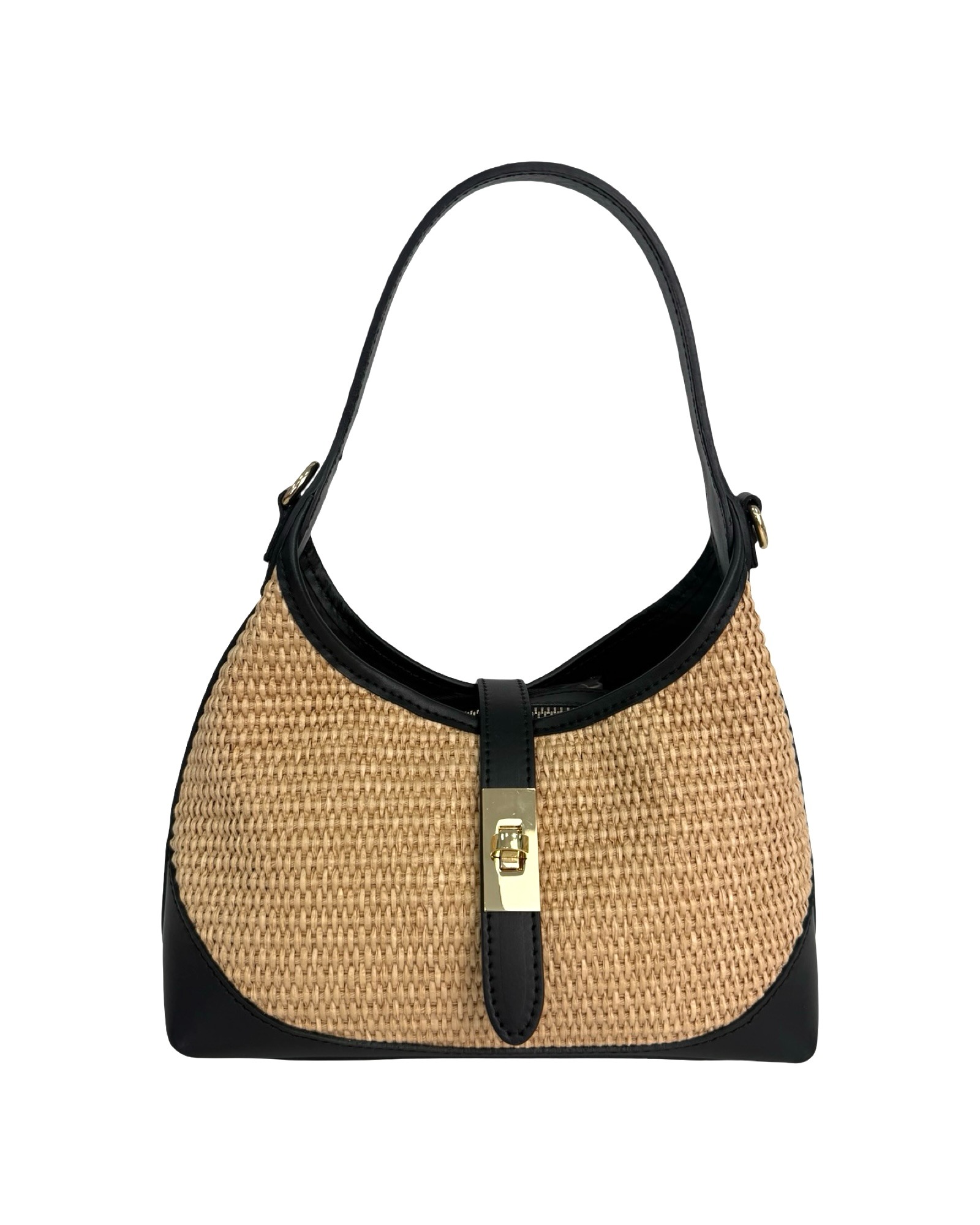 Outer Material: Raffia and leather edges with gold accessories on the front