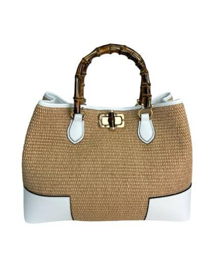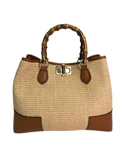 Leather and raffia bag