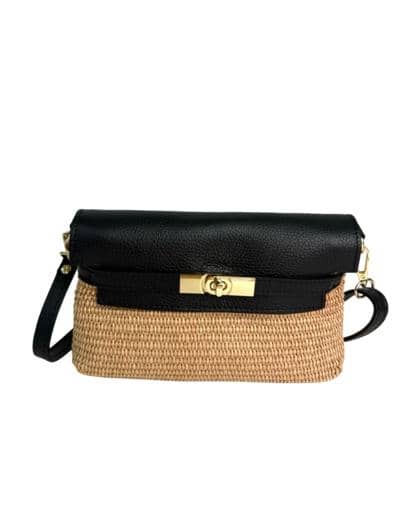 Bag in leather and raffia