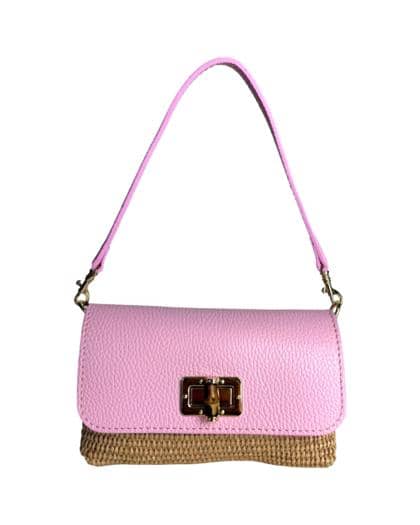 Leather and raffia bag with side decoration
