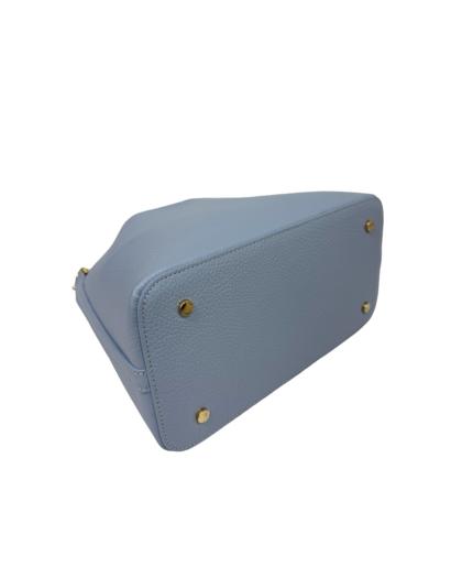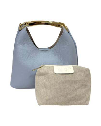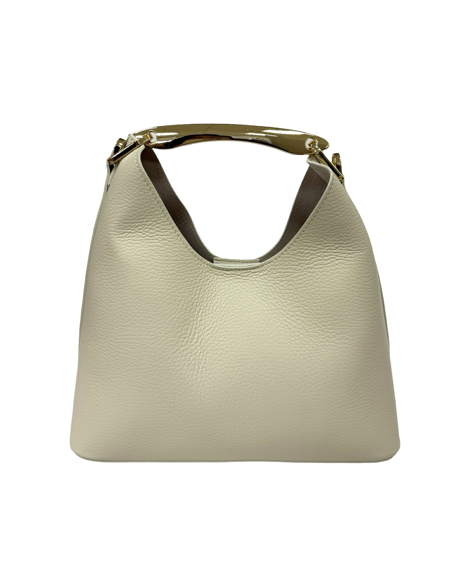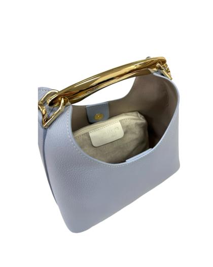 Exterior: button closure handle with gold-colored accessory