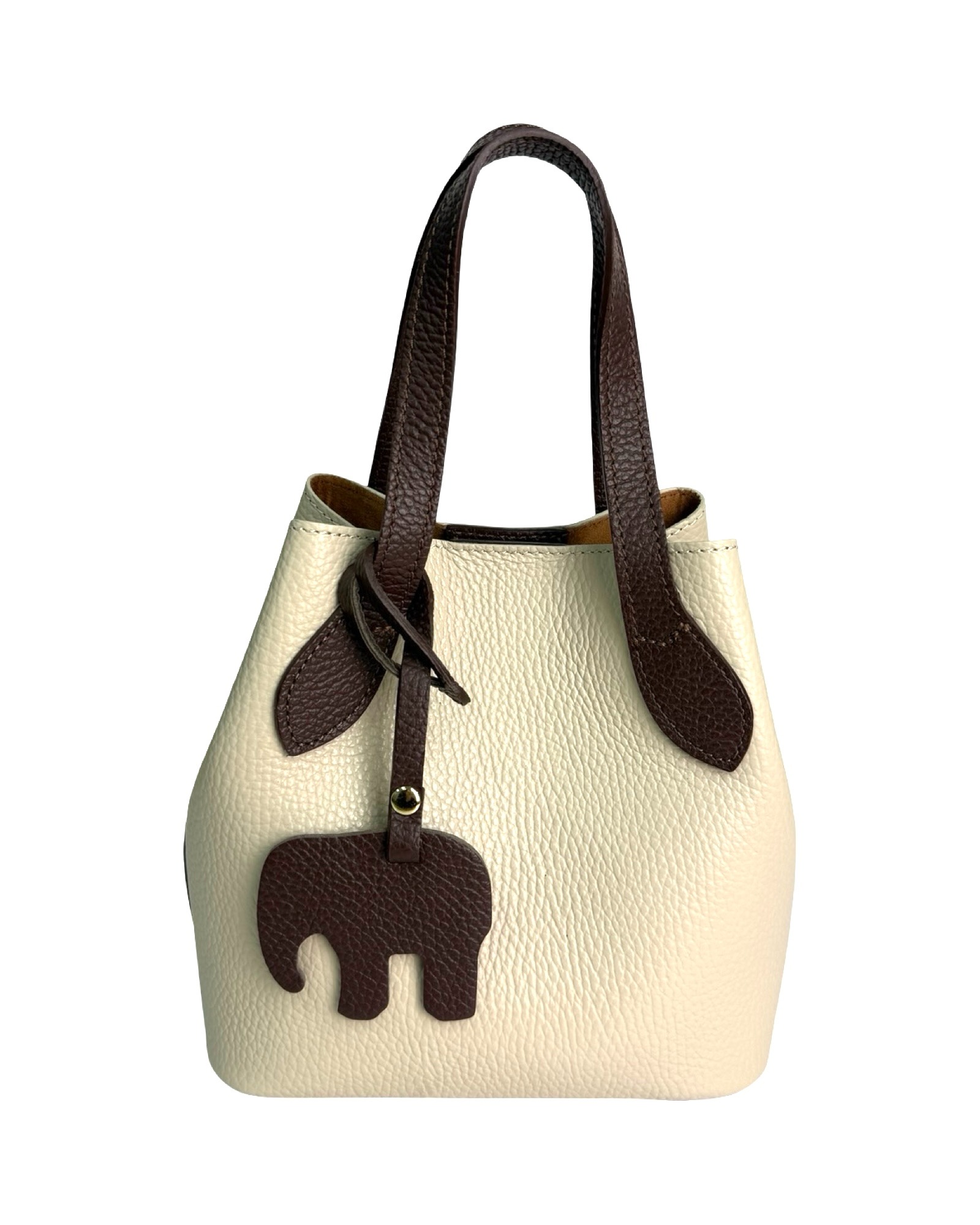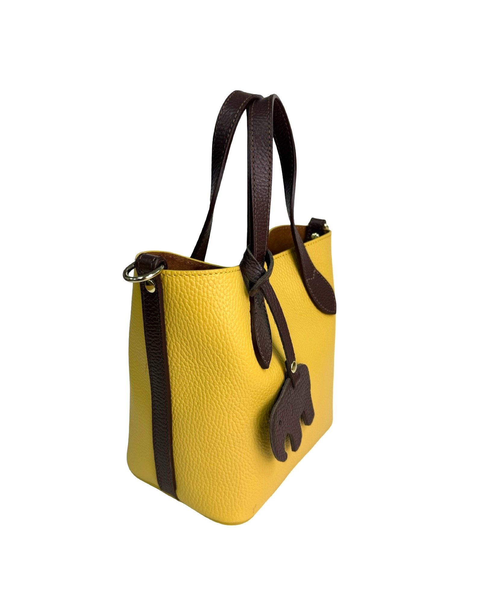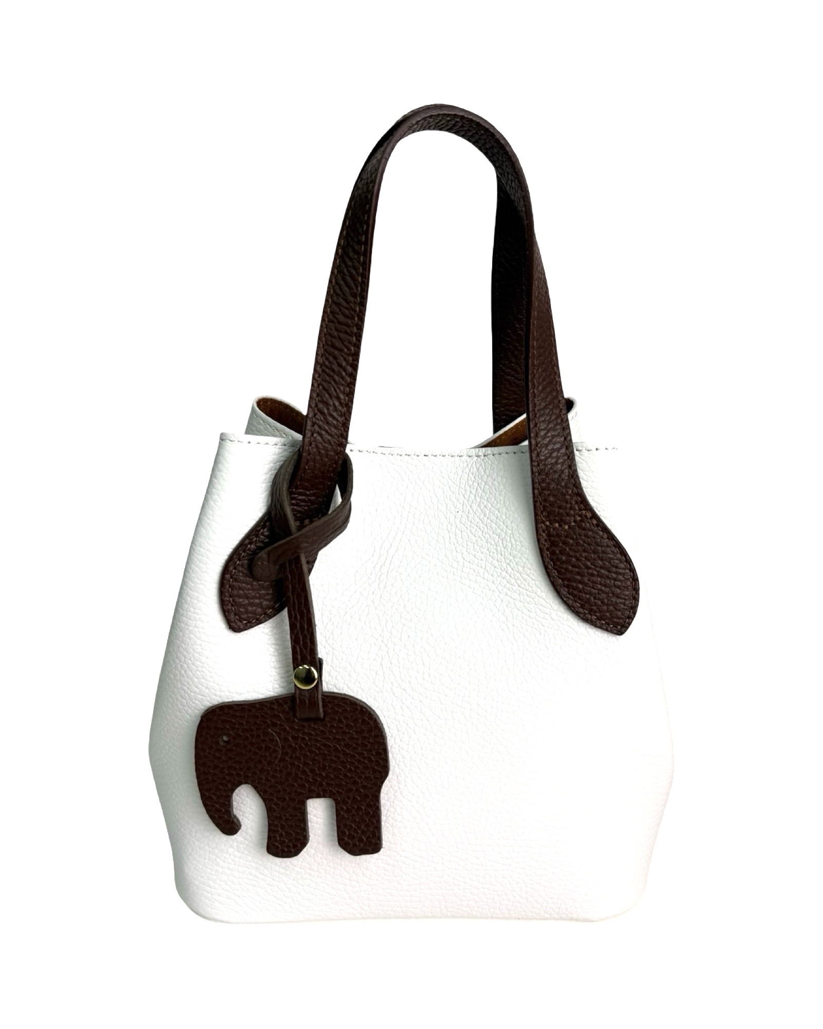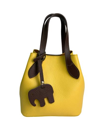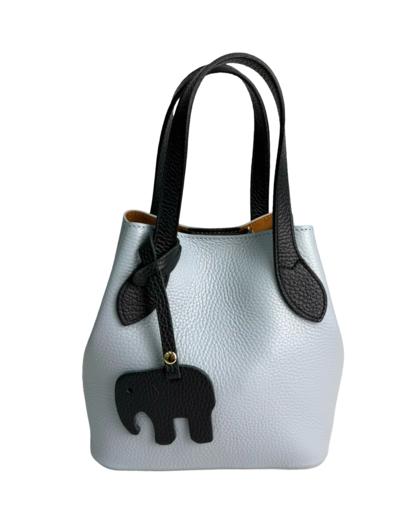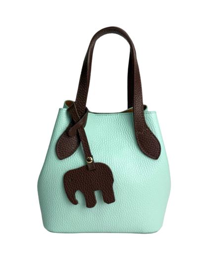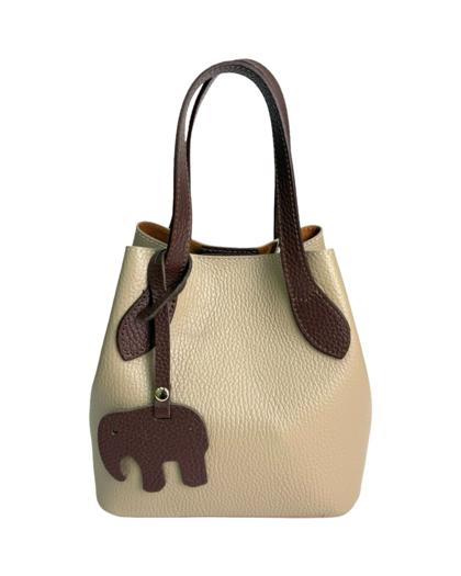 Leather bag with pendant, two-tone handles and sides in another color