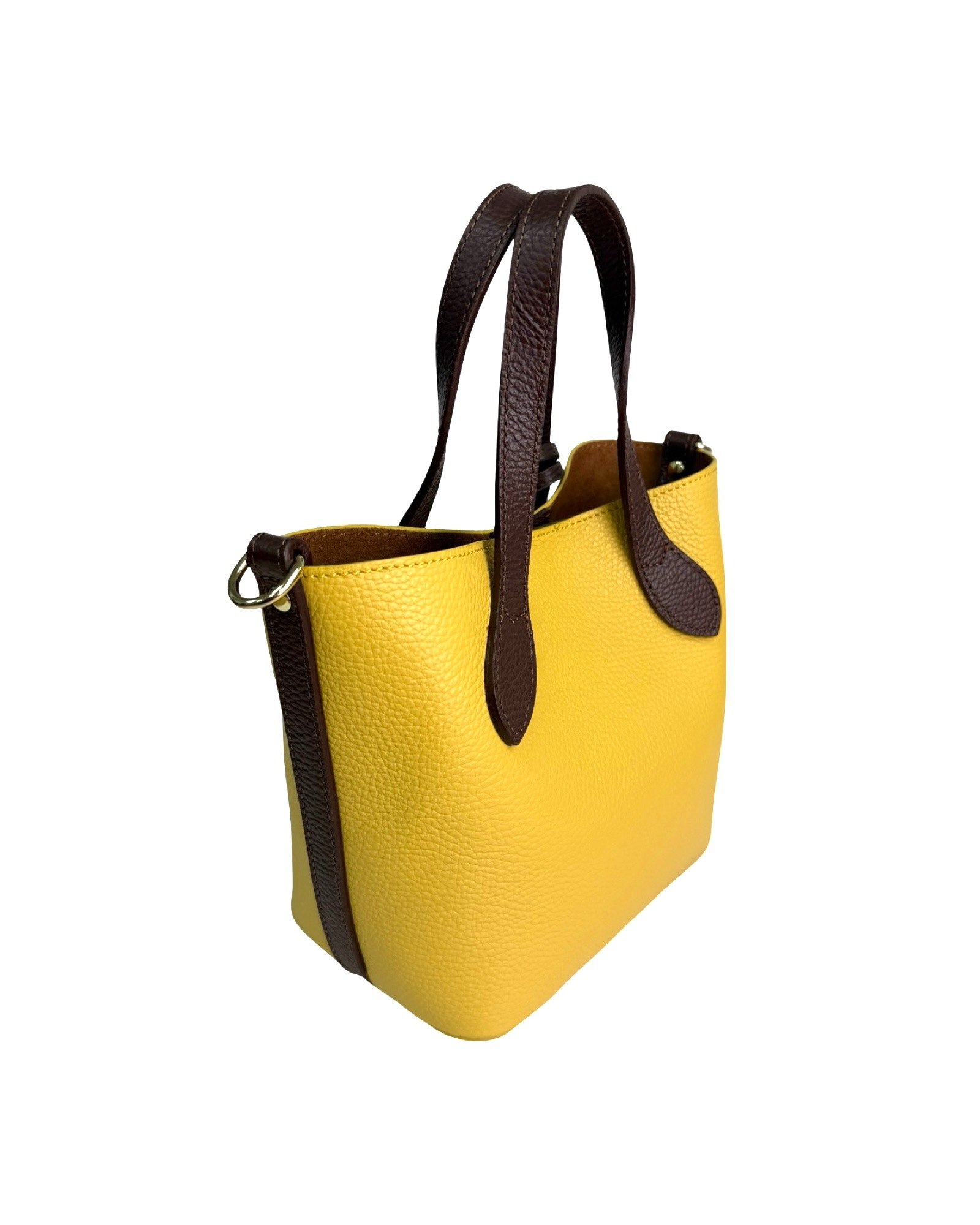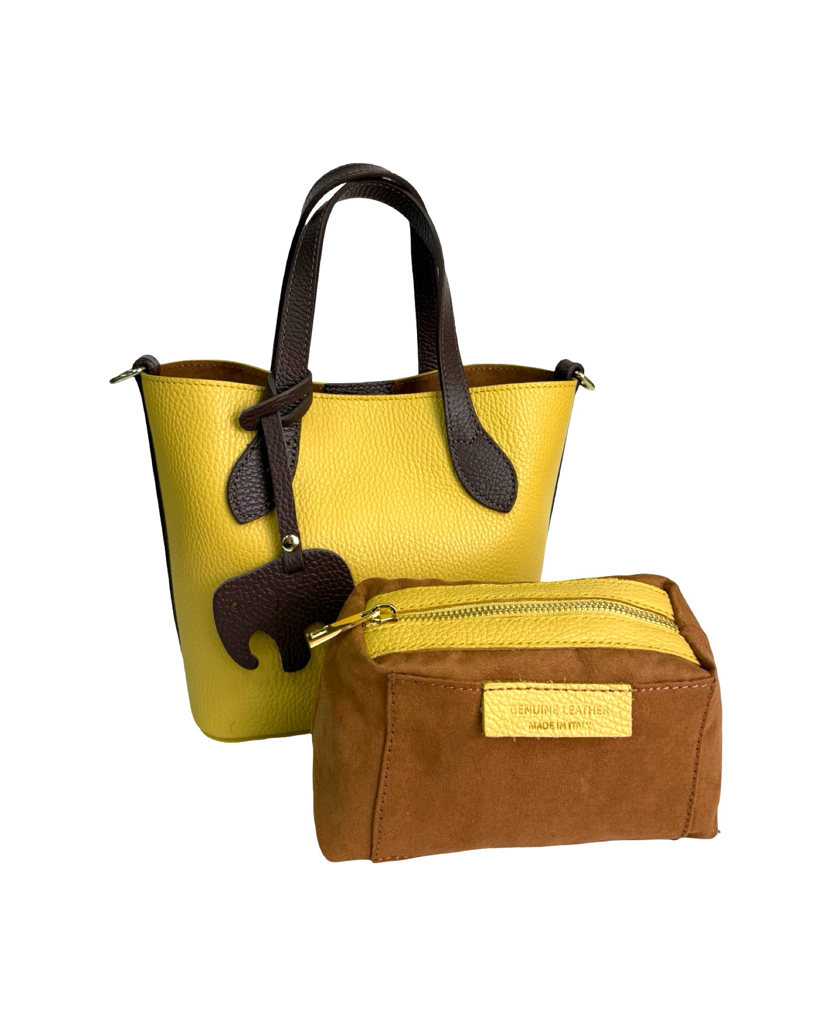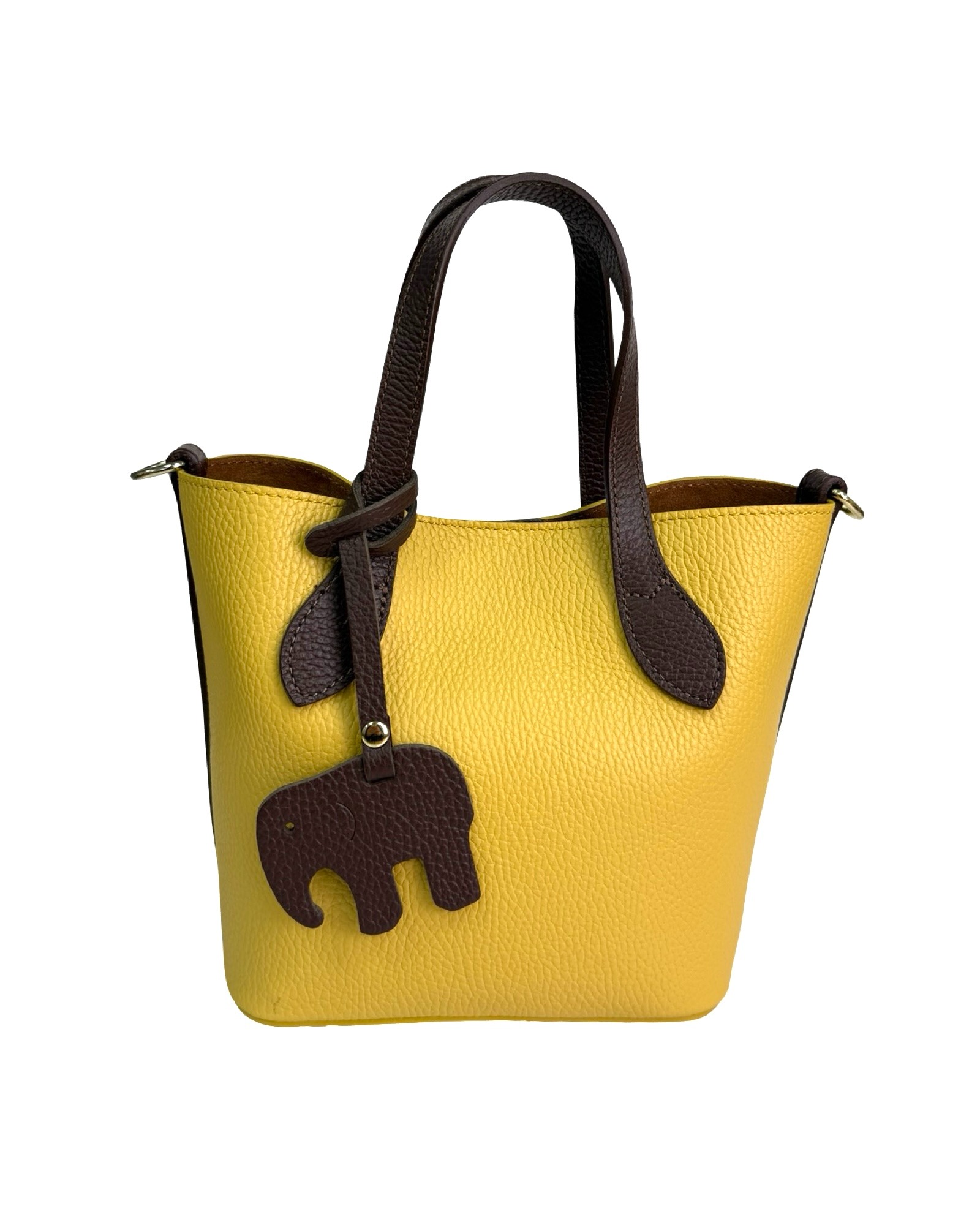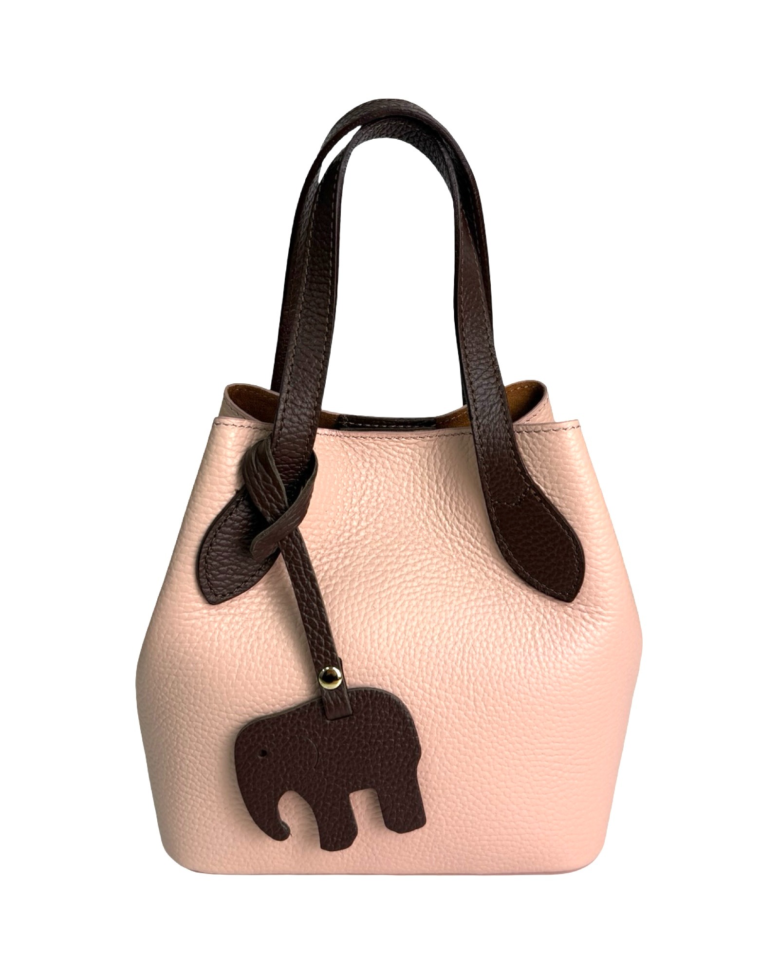 Leather bag with pendant, two-tone handles and sides in another color